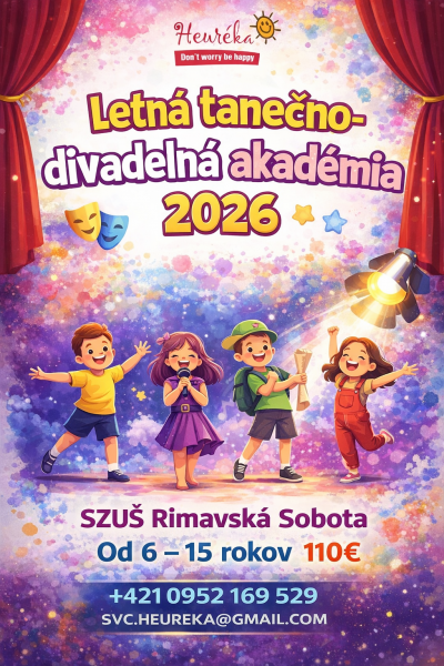 20.7. 2026 – 24.7. 2026 Letom svetomDobrodružný tábor, kde deti hravou formou spoznávajú rôzne krajiny, kultúry a tradície cez hry, tvorenie a pohyb.